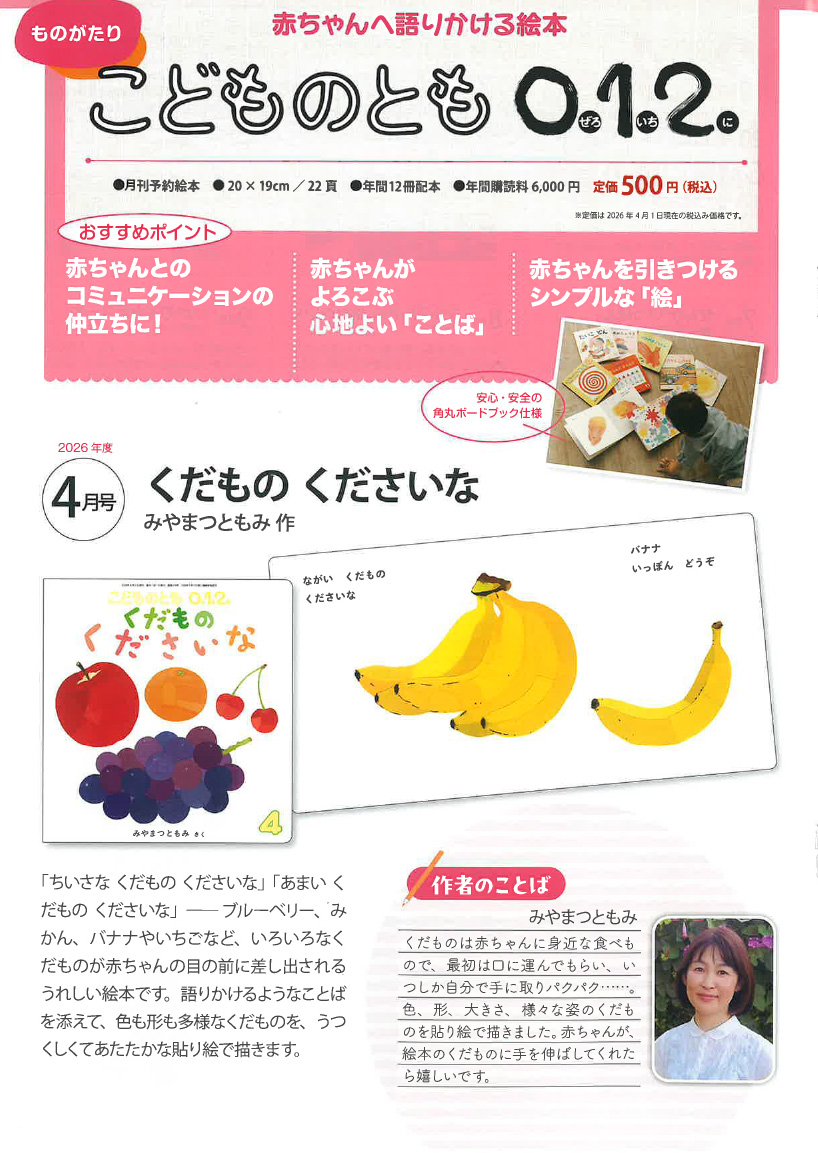 福音館書店の月刊絵本は、国際的にも高く評価され、新聞書評でもよく話題になります。安心して与えられる月刊誌として最も最適なものと思います。